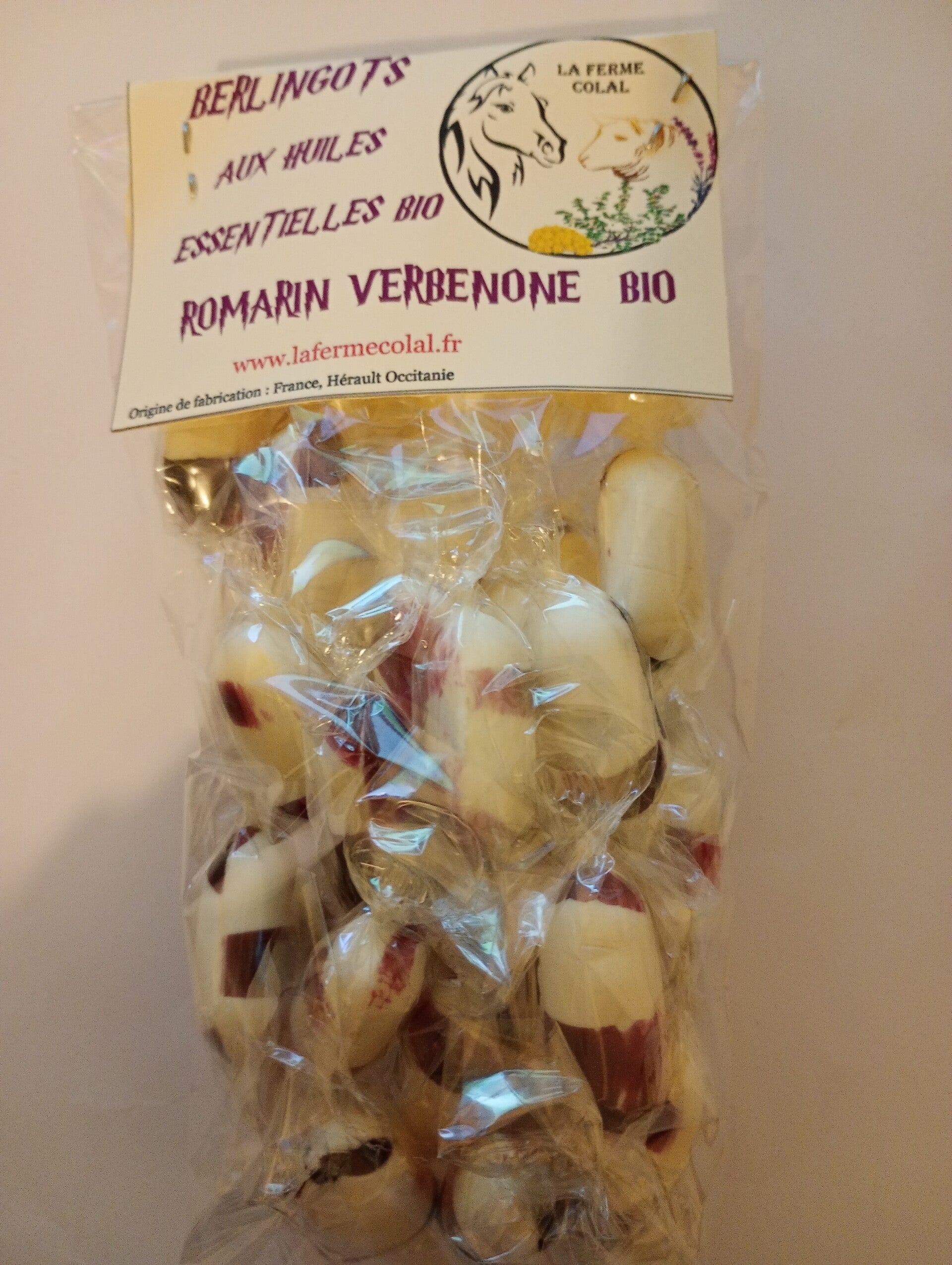 Ingrédients : Sucre, Sirop de Glucose, Eau, huile essentielle romarin verbenone bio